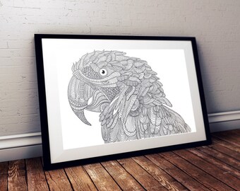 Papagei Ausmalbilder Fur Erwachsene Vektor Leinwandbilder Bilder Ara Farben Schwarz Weiss Myloview De