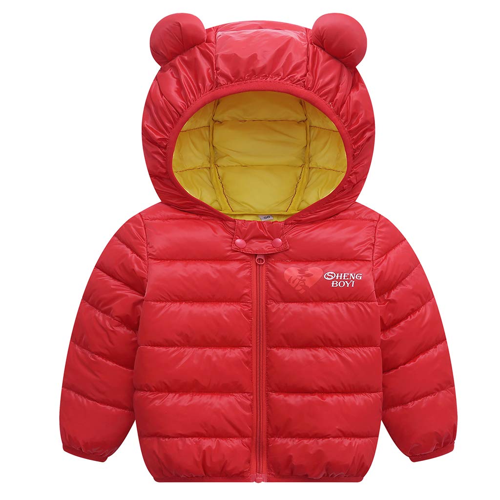 Baby Jacke Winter Mantel Kapuzenjacke Ultraleicht Mantel Mit Kapuze Gepolstert Rot 90cm