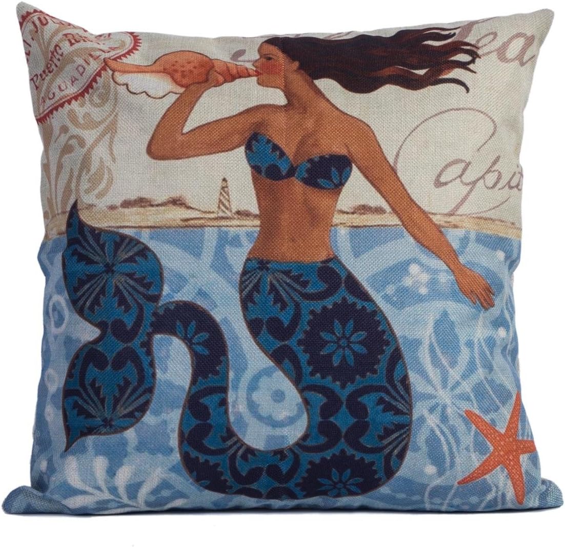 Afut Baumwolle Leinen Kissenbezug Kissen Fall Sea Mermaid A Amazon De Kuche Haushalt