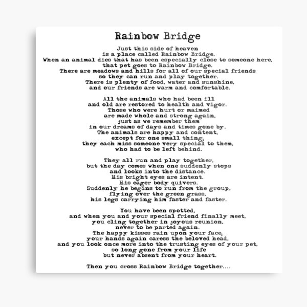 Regenbogen Bridge Gedicht Mit Bunten Pfoten Print Von Sharon Cummings Metallbild Von Sharoncummings Redbubble