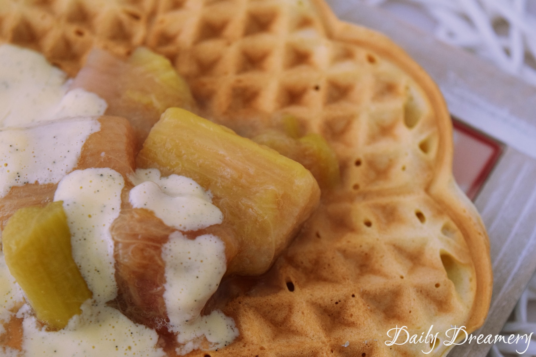 Waffeln Mit Rhabarber Und Vanillesosse Daily Dreamery