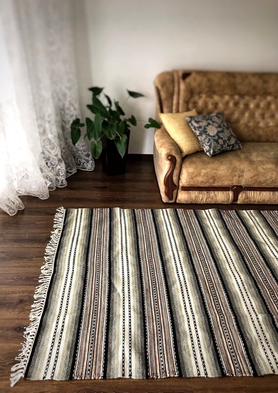 Wolle Teppich Handgewebte Laufer Teppich Skandinavische Nere Etsy