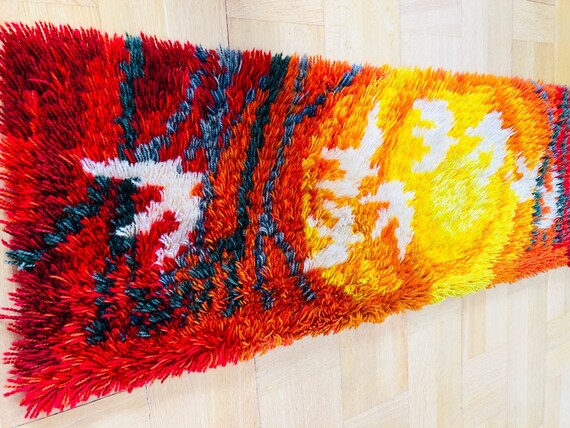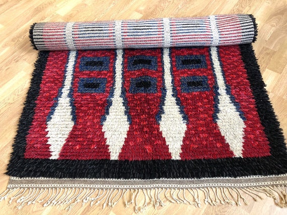 Verkauf Skandinavischen Wollteppich Handgeknupfte Rya Lappen Etsy