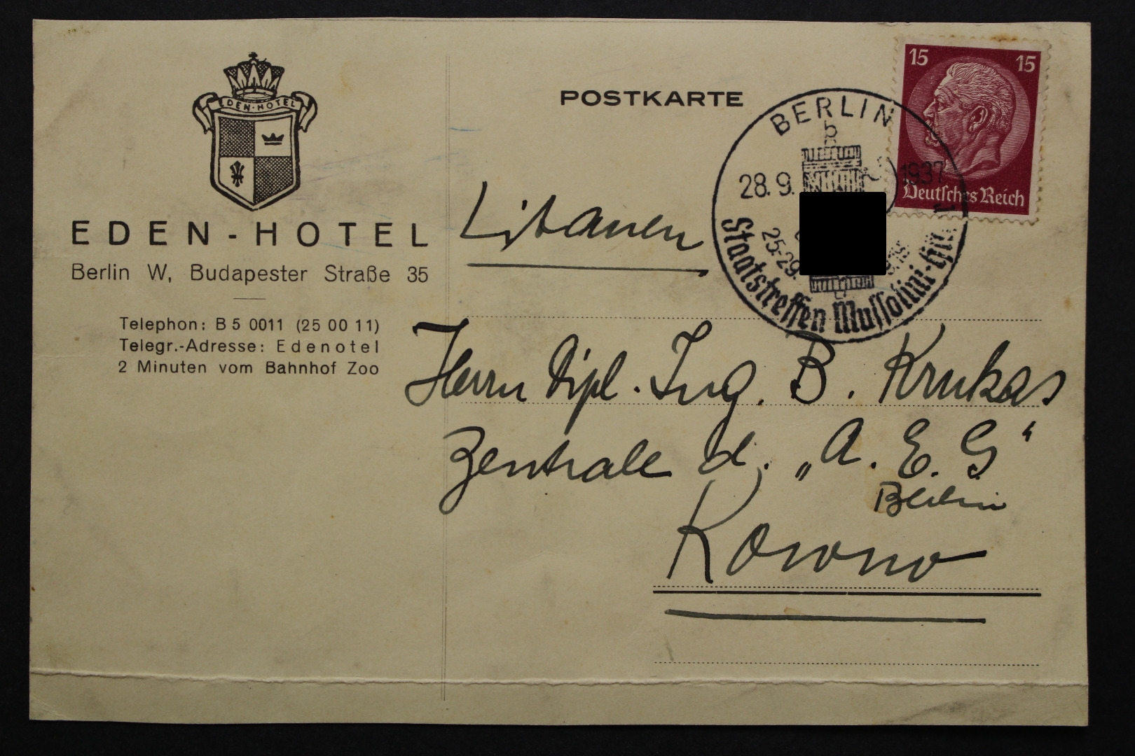 Berlin Eden Hotel Werbezudruck Auf Postkarte 1937 Briefmarken Holsten