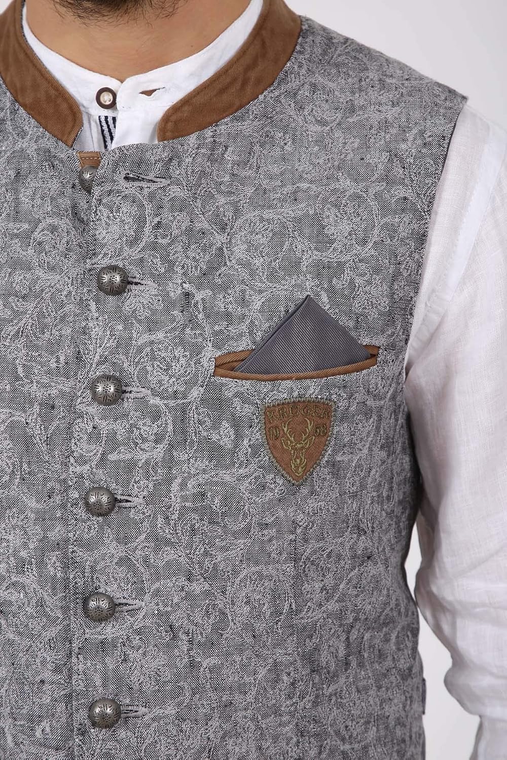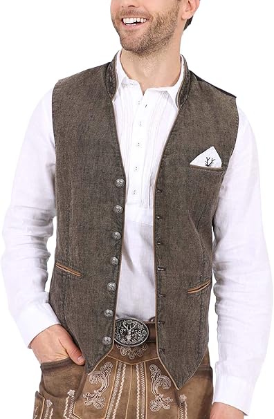 Kruger Buam Herren Trachten Weste Damwild Grau Braun Westen Janker Westen Bekleidung Herren Trachtenland