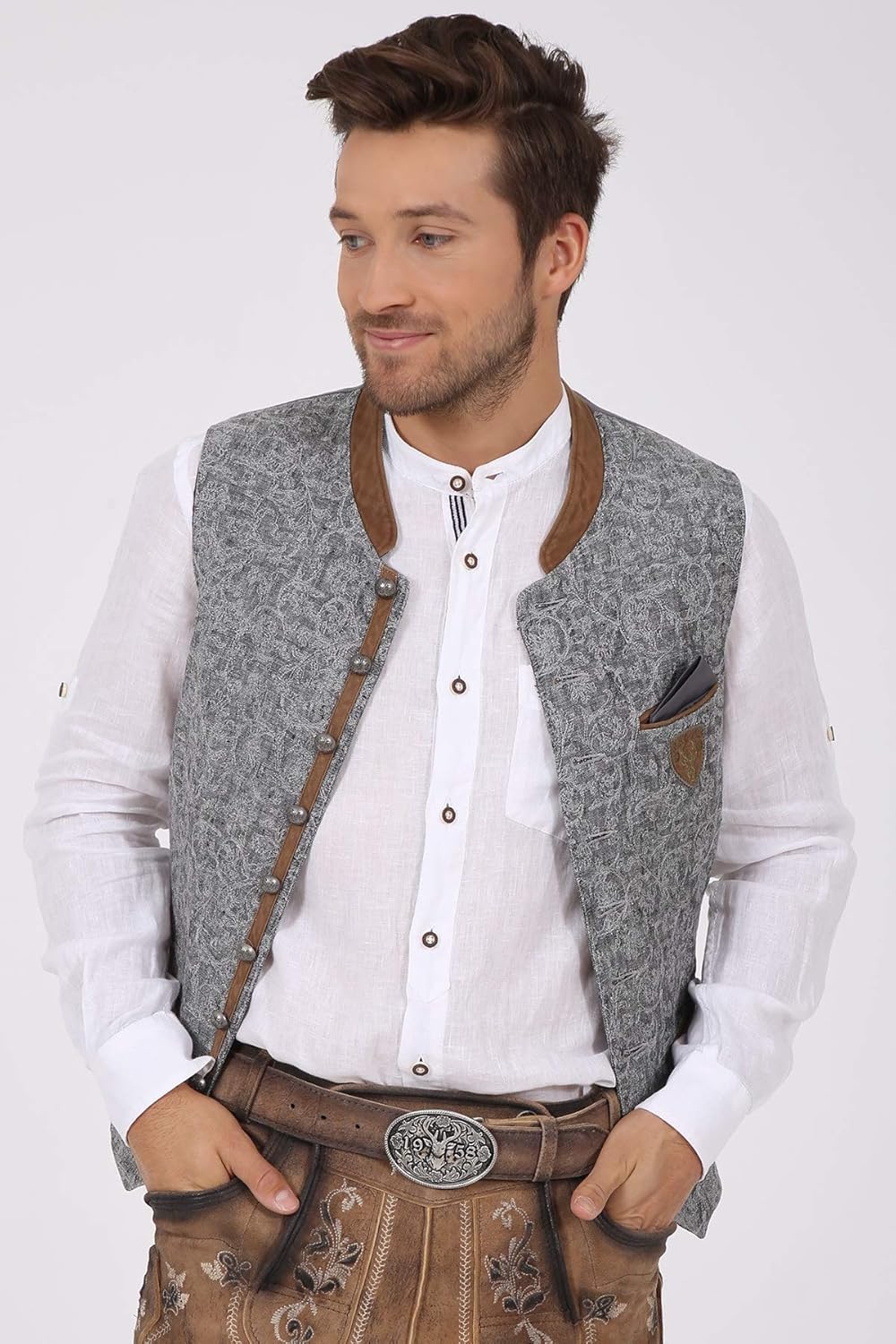 Hammerschmid Herren Trachten Mode Trachtenweste Julian In Silber Traditionell Trachten Trachten Bekleidung