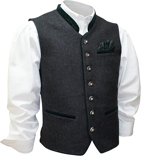 Maddox Weste Trachten Gilet Lodengilet Lodenweste Trachtengilet Trachtenweste Armellos Loden Gilet Anthrazit Dunkelgrau Gruner Brokat Mit Passendem Stecktuch Amazon De Bekleidung