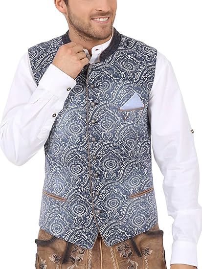 Kruger Herren Trachten Weste Modell Nils Armellos Art Nr 0 0008 Blau Amazon De Bekleidung