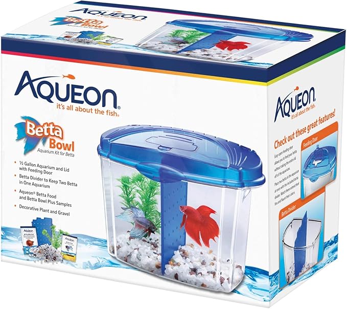 Amazon Com Aqueon Betta Fish Tank Starter Kit Half Gallon Blue Fish Bowls Pet Supplies