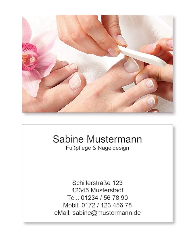 Visitenkarten 500 Visitenkarten Fur Fusspflege Pedikure Nageldesign Nagelstudio 350g Bilderdruck Matt Burobedarf Schreibwaren