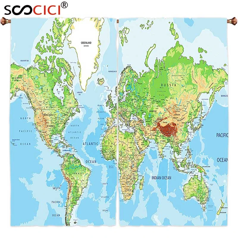 Fenster Vorhange Behandlungen 2 Panels Karte Weltkarte Drucken Padagogisches Geographischen Erde Ozean Reisen Voyager Blau Grun Curtains Window Treatments Window Treatment Panelwindow Treatments Aliexpress