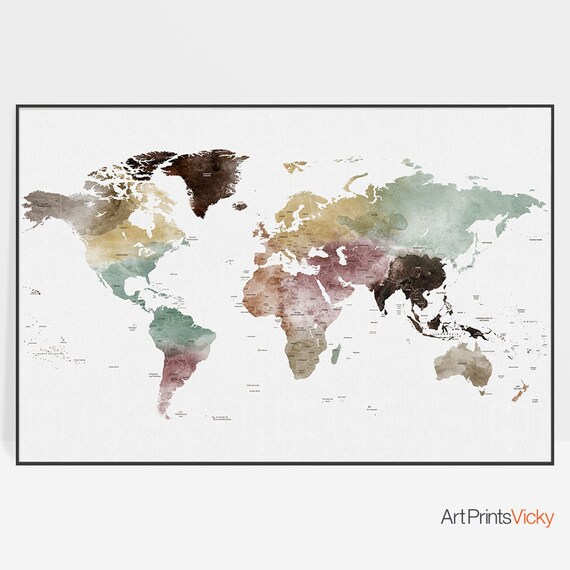 Weltkarte Wandkunst Grosse Weltkarte Drucken Weltkarte Poster Etsy