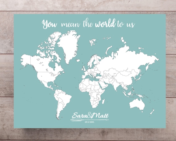 Hochzeit Gastebuch Weltkarte Drucken Mit Namen Datum Etsy