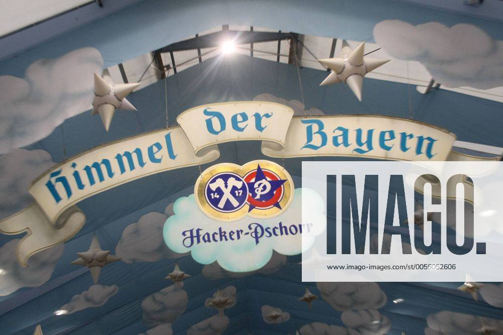 Innerhalb Des Hacker Festzeltes Auf Dem Oktoberfest Mit Seiner Schonen Dekoration Des Daches Und Der Umliegenden Wande Lizenzfreie Fotos Bilder Und Stock Fotografie Image