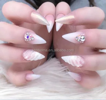 Stiletto Mate Presse Auf Nagel Benutzerdefinierte Shimmer Shiny Strass Dekoration Spitz Sharp Fingernagel Kunstliche Falsche Nagel Falsche Nagel Aliexpress