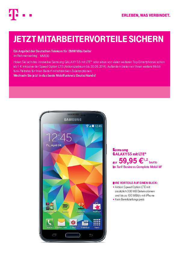 Samsung Galaxy S5 Lte Mit Vertrag Zum Halben Preis Bei Der Telekom