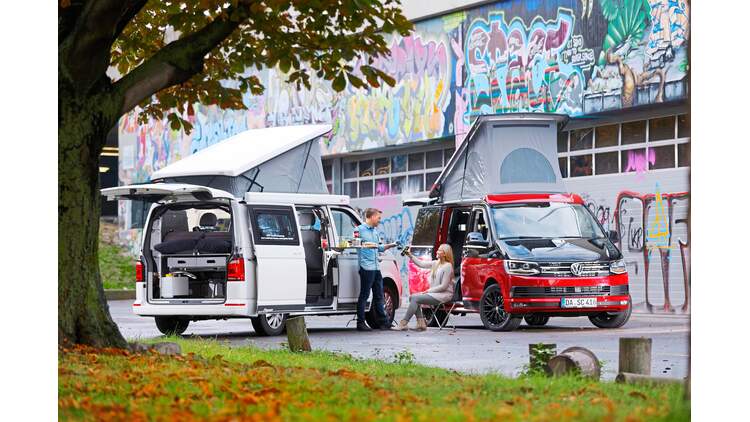 Mit der voll durchladefähigen SpaceCamperRückbank, einer gut ausgestatteten Küche und einem geräumigen Schrank verwandelt sich der VWBus in ein komfortables Wohnmobil Trotz der campingtypischen Möbelstücke überzeugt der Classic im Vergleich zu anderen Campingausbauten mit einem besonders bequemen und großen Bett – und dem.
