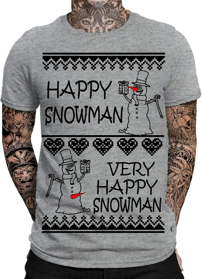 Very Happy Snowman Herren Weihnachts T Shirt Fun Spruche Shirt Ugly Xmas Tshirt Christmas Lustig Schneemann Santa Weihnachten Amazon De Bekleidung