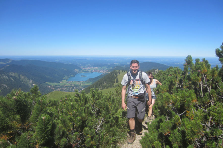 In drei en umrundet man auf dieser Tour den Spitzingsee in den Bayerischen Voralpen Die erste Etappe führt vom Spitzingsattel zum Taubensteinhaus auf 1567 m Etwa auf halbem Weg liegt die Schönfeldhütte, wo man einkehren und sich stärken kannIst man mit kleineren Kindern unterwegs, kann man auch die Bergbahn auf den Taubenstein nehmen und hat so nur wenige Höhenmeter zu überwinden. Frisch gestärkt starten wir Richtung Spitzingsee, welcher etwa 6 km südlich des Schliersees auf 1084 m Höhe idyllisch zwischen Jägerkamp, Taubenstein, Roßkopf, Rotwand, Brecherspitz und vielen weiteren Berggipfeln liegt. Die Wanderung war generell einfach und nicht anstrengend Richtig steil war es nirgends und so kamen wir schnell an der Jägerbauernalm vorbei Eine Rast hatten wir aber noch nicht nötig, daher ging es direkt weiter auf den Gipfel, also auf den Jägerkamp.