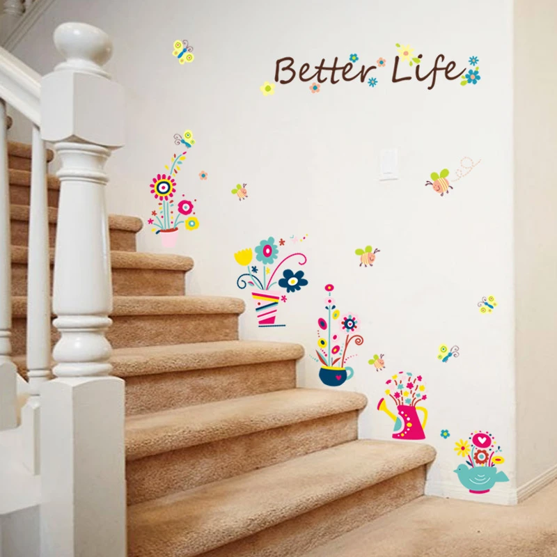 Schone Topfblumen Bee Wandtattoos Schrank Flur Wandaufkleber Diy Dekoration Grune Plastikblumen Pflanzer Wand Poster Poster Mural Wall Stickerwall Poster Aliexpress