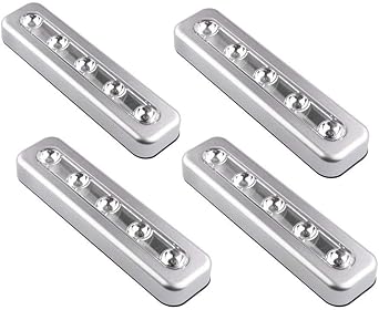 Onerbuy 4 Stuck Batteriebetriebene Led Touch Licht Diy Stick On Uberall 5 Led Tap Light Push Nacht Lampe Fur Schranke Schranke Schrank Flur Treppen Silber Amazon De Beleuchtung