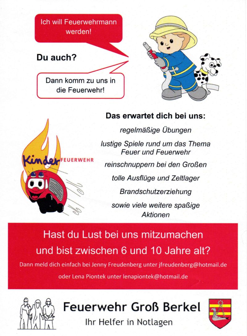 Am Feuerwehr Geburtstag dürfen coole Spiele für kleine Feuerwehrmänner nicht fehlen Wir haben die besten Ideen für Feuerwehrspiele für drinnen und draußen. Flyer kinderfeuerwehr bayern Simply Choose a Template Add Photos, Music & Text Email or Share with Ease Entwerfen Sie individuelle Flyer oder wählen Sie aus Tausenden von Vorlagen ausEntdecken Sie anpassbare Größen, Stile und Themen für das Design Ihres Flyers. Die Kinderfeuerwehr war auch im sechsten Jahr ihrer Gründung mit 25 Mitgliedern ausgebucht Die Anzahl der Aktiven in der Jugendfeuerwehr konnte mit 14 Jugendlichen konstant gehalten werden Befördert wurden Jule Henkel wurde zur Oberfeuerwehrfrau, Lisa Marie Lautenschläger, Stephan Becker und Tim Felix zu Löschmeister.