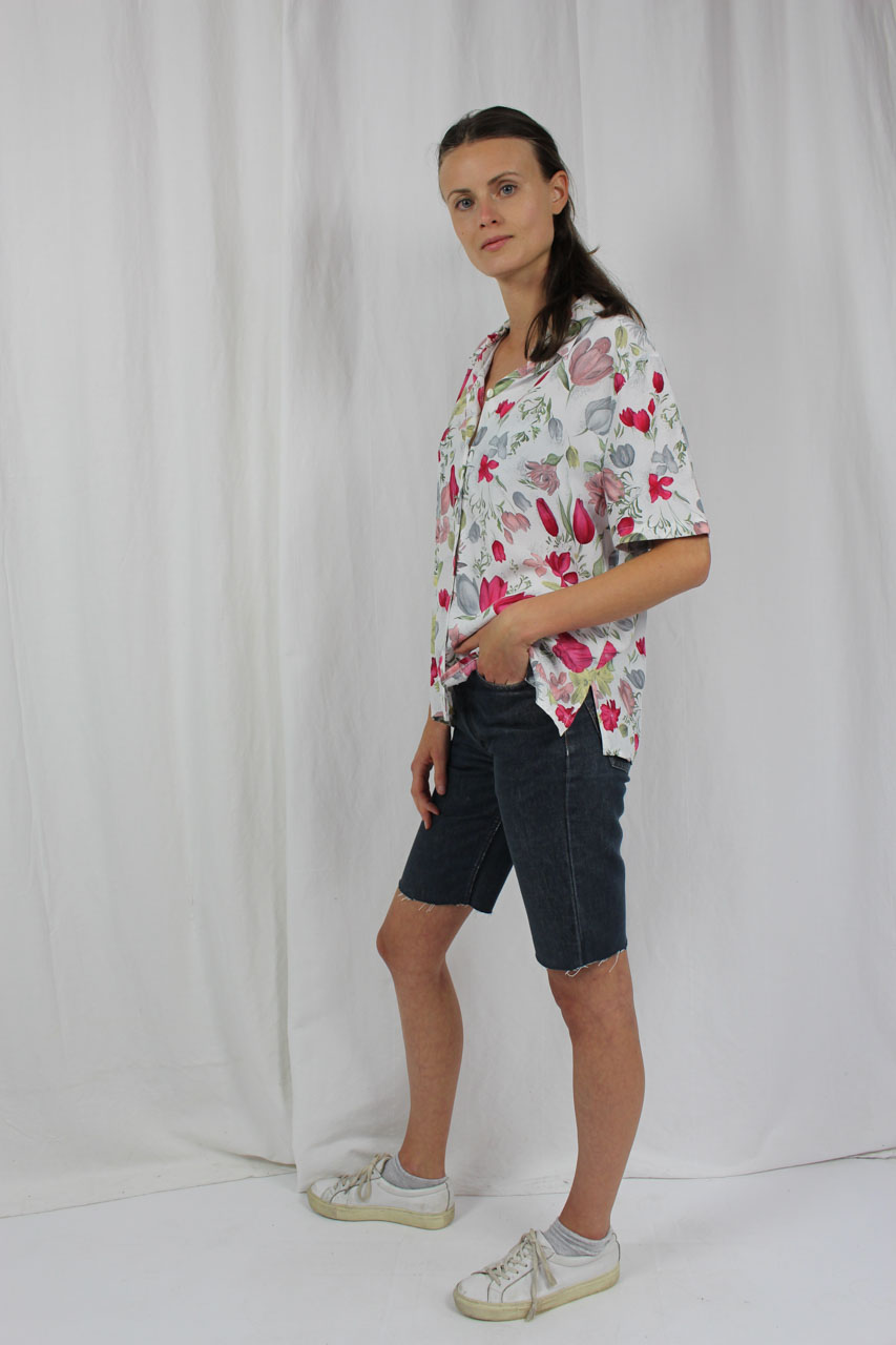 Vintage Kurzarmbluse Weiss Blumenmuster Lara Oma Klara
