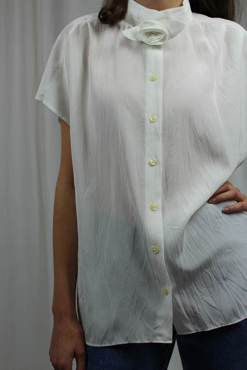Weisse Kurzarm Bluse Aus Baumwolle 46 Sumissura