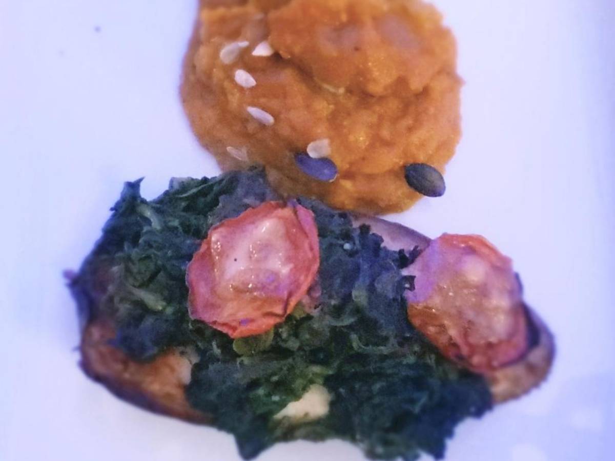 Kurbispuree Mit Uberbackener Spinat Aubergine Rezept Kitchen Stories