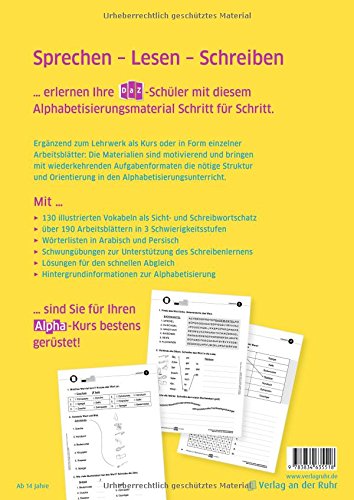 Das Übungsbuch "Erste Hilfe Deutsch Alphabetisierung für Kinder" bereitet Kinder, die nicht Deutsch als Muttersprache haben, optimal auf den Schulalltag vor Kinder ab 5 Jahren erlernen spielerisch Buchstaben und einfache Wörter, die Schwungübungen bilden die Grundlage für das Schreiben und schulen die Feinmotorik. Reference materials are being created A variety of places like the Herder Institute in Leipzig offer literacy classes, but since the beginning of 11, GFL teachers typically have to raise the fees of €750 themselves Due to the low wages in adult education, many of the students can’t afford it so it is questionable whether the course will. Aufgabenblätter zum Herunterladen (Format pdf, Größe 0,54 MB), 13 Seiten, DIN , 5 bis 10.
