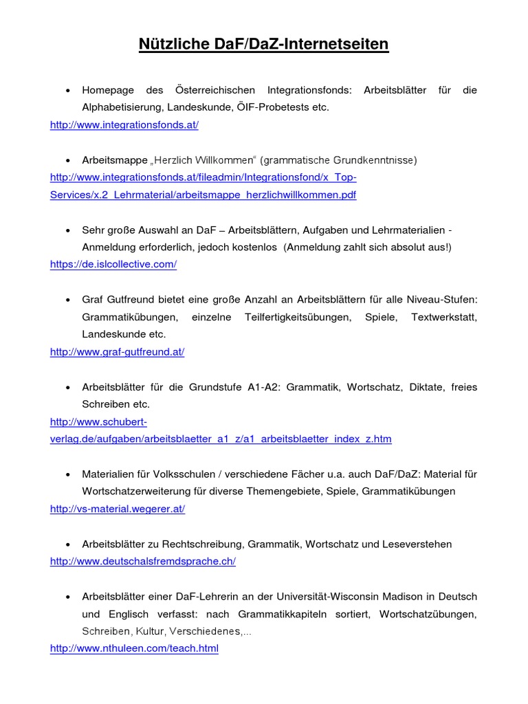 Caritas Liste Hilfreicher Internetseiten Fur Daf Daz