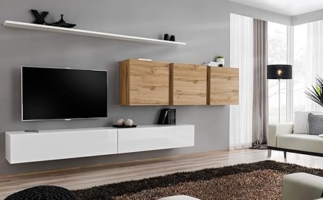 Furniture24 Wohnzimmer Set Wohnwand Sky Tv Schrank Vitrine Hangeregal Kommode Sideboard Couchtisch Riviera Eiche Amazon De Kuche Haushalt