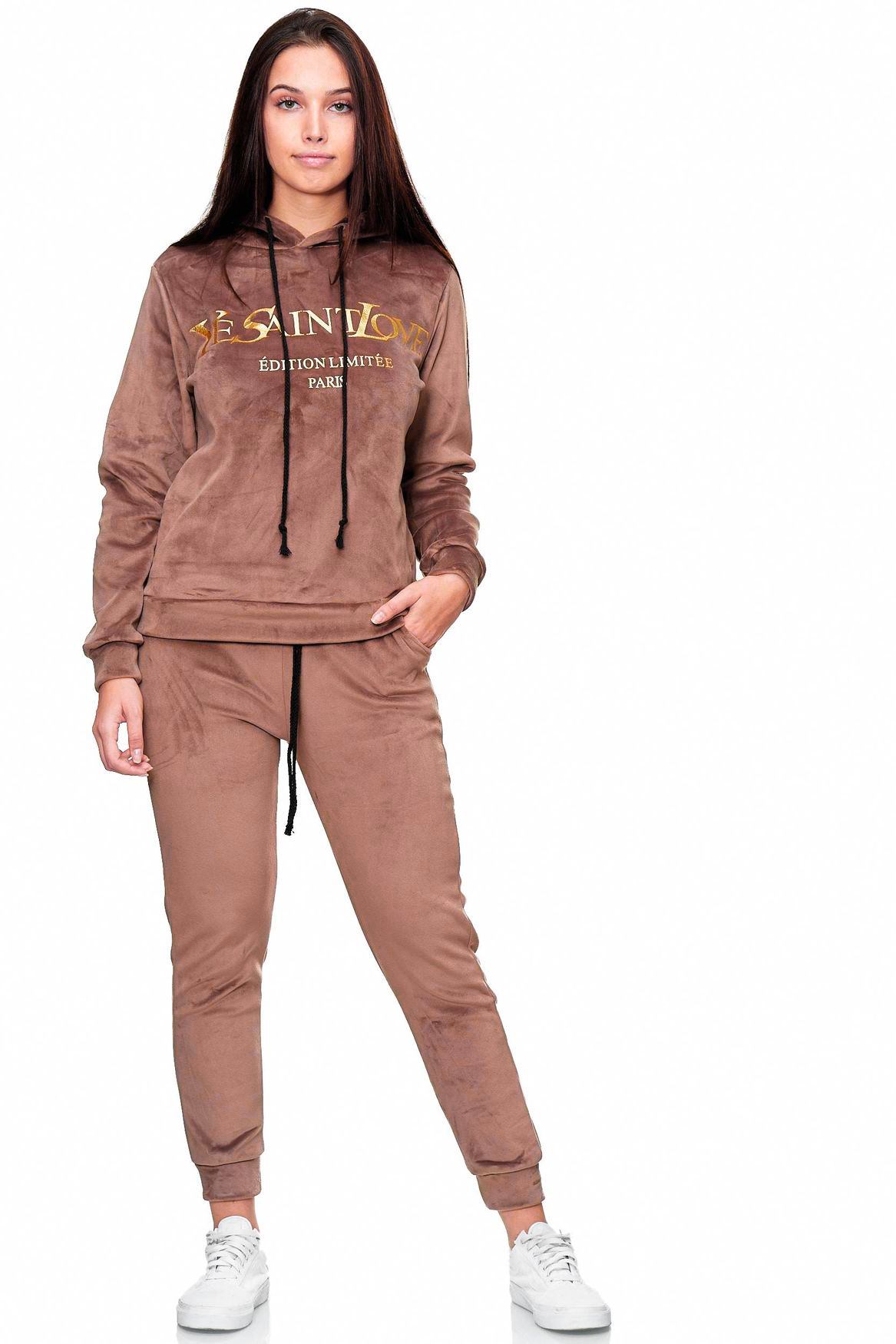Jogging Anzug Mit Kapuze Samt Optik Fitness Sportswear Young Fashion Angies Glamour Fashion