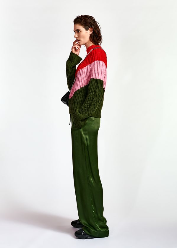 Tannengrune Hose Im Pyjama Stil Aus Satin Mit Weitem Bein Essentiel Antwerp Deutschland