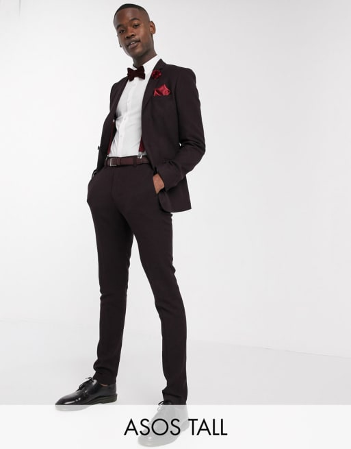 Evesham Nj Design Tall Wedding Enger Anzug In Woll Optik In Burgunder Evesham Nj