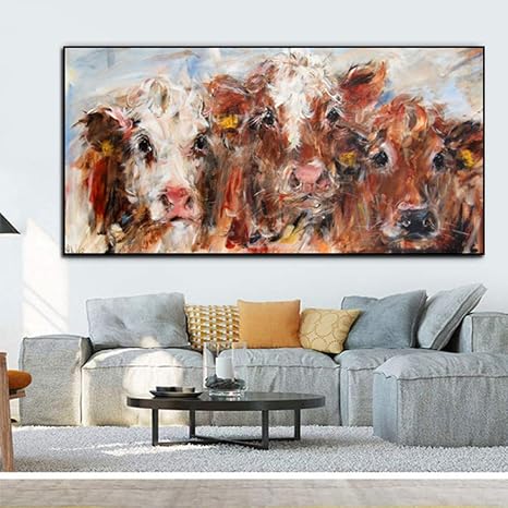 N A Olgemalde Tier Plakate Und Drucke Farbige Kuh Leinwand Gemalde Verwendet Fur Wohnzimmer Dekoration Gemalde Moderne Rahmenlose 40x80cm Amazon De Kuche Haushalt