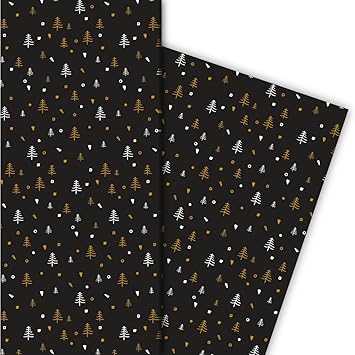 Kartenkaufrausch Designer Weihnachtspapier Geschenkpapier Set Zu Weihnachten Mit Grafischen Kleinen Weihnachtsbaumen Schwarz Geschenkverpackung Diy Projekte Basteln 4 Bogen 32 X 48cm Amazon De Burobedarf Schreibwaren