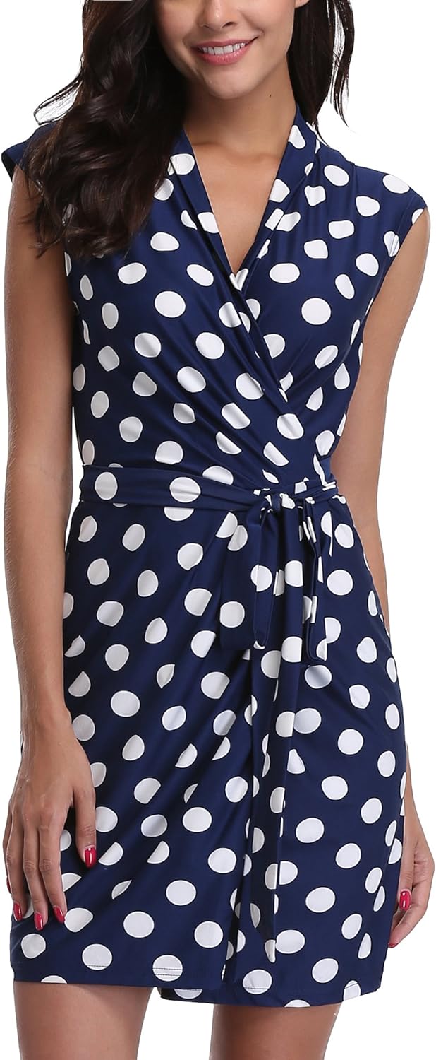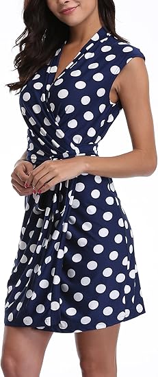 Miss Moly Damen Polka Dots Wickelkleider Kreuz V Ausschnitt Wickeloptik Mit Bindegurtel Amazon De Bekleidung