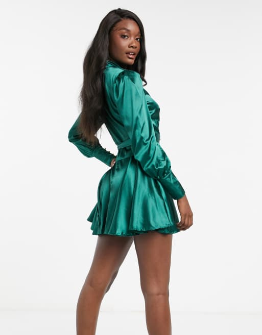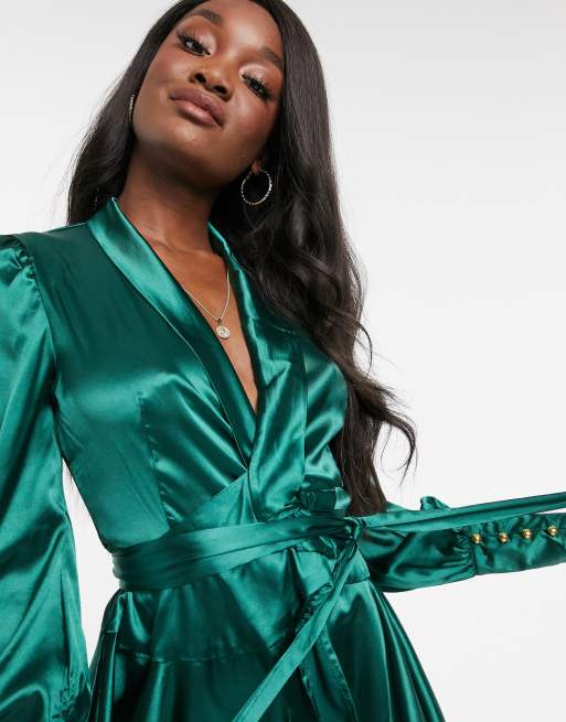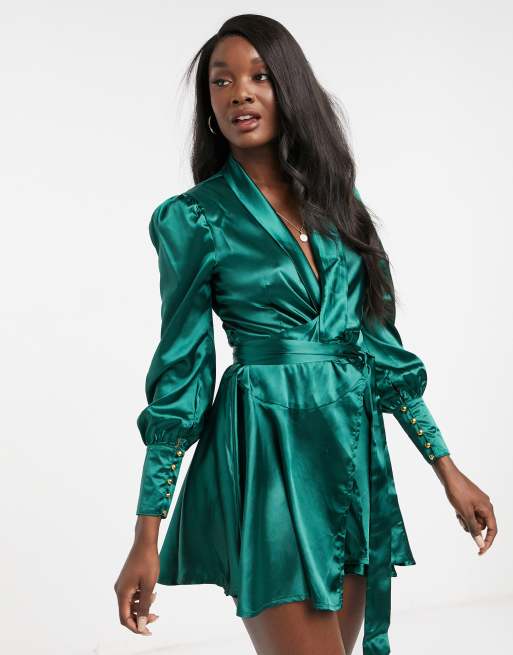 Club L London Mini Wickelkleid Aus Satin Mit Aufschlagen An Den Armeln Asos