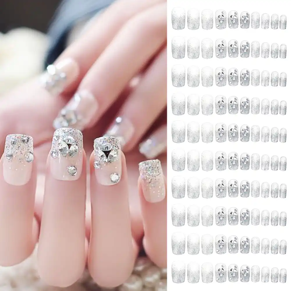 24 Pcs Falsche Nagel Glitter Abdeckung Kristall Blume Diamant Braut Hochzeit Naturliche Gefalschte Nagel Kunst Manikure Platz Werkzeug Mit Kleber Falsche Nagel Aliexpress