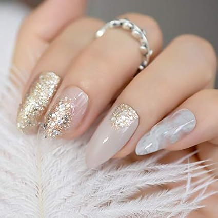 Echiq Nude Marmor Muster False Stiletto Nails Champagner Glitter Spitz Fake Nagel Sharp End Full Cover liche Braut Tragen Nagel Tipps Amazon De Beauty