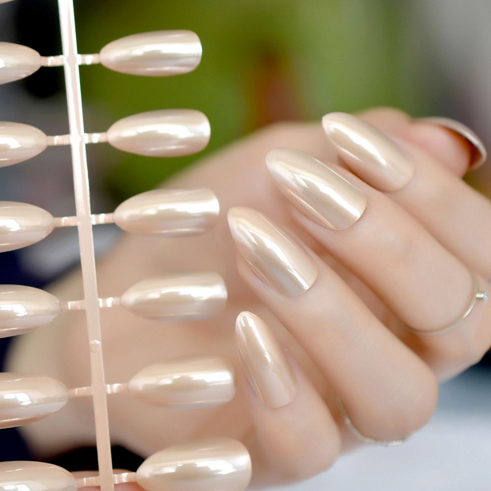 Grosshandel Mode Champagne Farbe Metallic Falsch Stiletto Nails Khaki Metall Spitz Full Cover Gefalschter Nagel Tragen Nails Art Von Caohu 06 Auf De Dhgate Com Dhgate