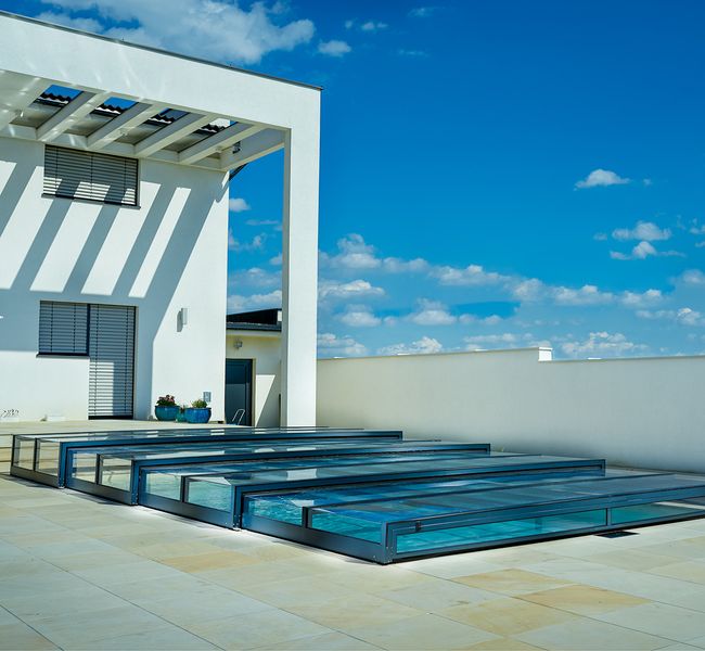 Conzero Superflat Pooluberdachung 4mm Polycarbonat Volltransparent Fur Conzero Rechteckbecken Modernes Flaches Design Poolakademie Der Pool Shop Fur Den Eigenbau Des Heimischen Pools