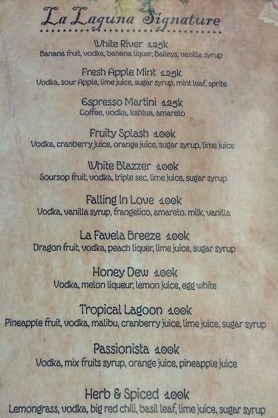 La Laguna Bali Menu