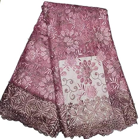 Amazon De Spitzenstoff 18 Nigeria Afrikanische Spitze Stoff Stickerei Spitze Spitze Strass Perlen Netz Tull Franzosische Spitze Fur Hochzeit Party Kleid Rose