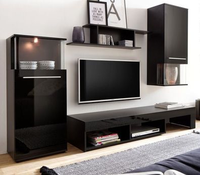 Wohnzimmer Wohnwand Hohe Cm 1 Lange Tiefe Cm 38 Breite Cm 279 Material Holzfaserplatte Farbe Schwarz Sombor Wohnzimmer Wohnwand