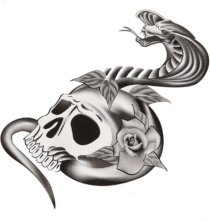 Chic Net Klebetattoo Temporar Totenkopf Rosen Kobra Schlange Rosen Schwarz Weiss 1 Bogen Amazon De Bekleidung