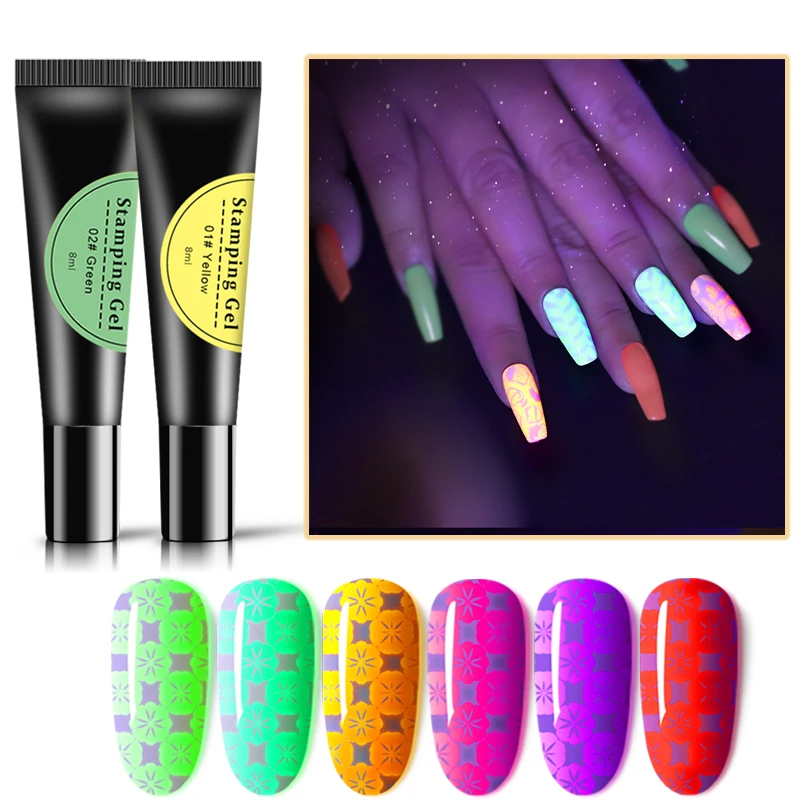 Nagel Gel Polnisch 8ml Neon Leuchtstoff Stempel Druck Ol Uv Gel Lack Leucht Tranken Weg Lack Fur Nagel Kunst Stempel Platte Nagelgel Aliexpress