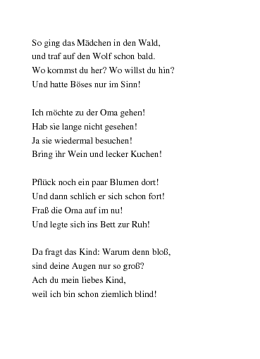 Gedichte Rotkappchen Und Der Wolf Von Rumpi