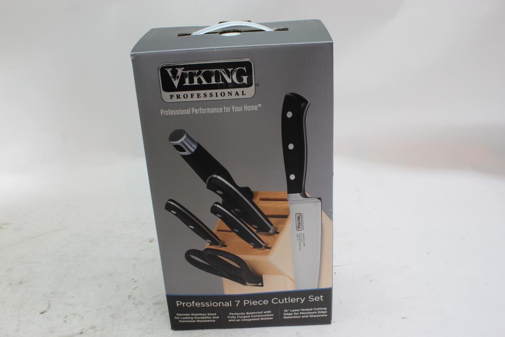 Viking® Professional 4Piece Steak Knife Set $199 Excluded from coupons Free Shipping on Orders Over $39 Viking® Easy Lock 8 qt Stainless Steel Pressure Cooker with Steamer 2 2 reviews $ Excluded from coupons Free Shipping on Orders Over $39 Viking® Hard Anodized Nonstick 8 qt Covered Stock Pot in Black. Viking 15Piece Knife Set With Wood Block Seller assumes all responsibility for this listing Shipping and handling This item will ship to United States, but the seller has not specified shipping options Contact the seller opens in a new window or tab and request a shipping method to your location. Viking Professional 7pc Cutlery Set Includes Paring, Utility, 8" Chef, 8" Bread, Scissors, Steel, Wood Block Designed and manufactured in Germany, Viking Professional Cutlery delivers uncompromising performance through the perfect balance between blade and handle geometry These fully forged knives are constructed from a single piece of steel, creating a seamless bolster and integrated tang.